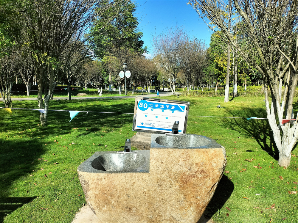 在青华海国家湿地公园,洗手台的主体是一块天然大石头,洗手池部分是嵌入的石质水槽,和公园的自然环境自然融合。来自浙江的刘先生高兴地告诉记者,保山是个好地方,他已经在保山养老,自己经常会来公园锻炼。“这个洗手台,太方便我们游客了。”刘先生说。