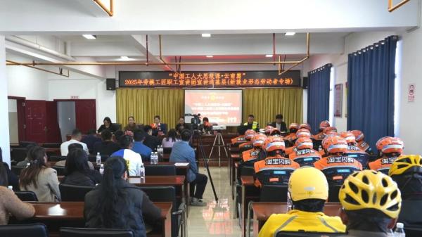初冬的祥云,阳光和煦。11月14日下午,祥云县褚家营社区村民委员会会议室里座无虚席,130名新就业形态劳动者代表及工会干部职工齐聚一堂,参加由云南省总工会主办,大理州总工会、祥云县总工会承办的“中国工人大思政课·云南篇”2025年云南省劳模工匠职工宣讲团宣讲进基层——新就业形态劳动者专场活动。