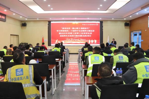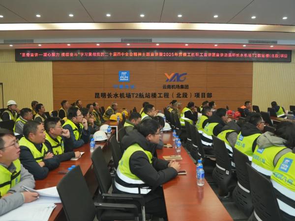 近日,“思奇宣讲—凝心聚力 接续奋斗”学习贯彻党的二十届四中全会精神主题宣讲暨2025年劳模工匠职工宣讲团宣讲,走进中建八局昆明长水国际机场扩建工程T2航站楼(北段)项目一线。来自宣讲团的理论专家、先进代表与近百名工程建设者齐聚工地现场,通过鲜活事迹与理论阐释相结合的方式,推动全会精神在基层落地生根,激发奋进力量。