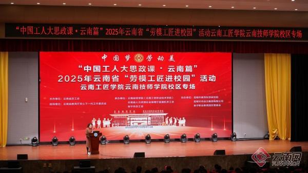 近日,“中国工人大思政课·云南篇”——2025年云南省“劳模工匠进校园”活动举办,活动由云南省总工会主办,云南省关心下一代工作委员会指导,云南技师学院(云南工贸职业技术学院)承办。本次活动紧扣“弘扬‘三个精神’ 助力成长成才”主题,策划并开展了一场主题宣讲、一次现场互动、一堂精品录播课、一次实地参观、一场创新工作室交流系列教育实践,多层次、多角度引导师生深刻感悟“三个精神”的时代价值,激励青年学子技能成才、技能报国。