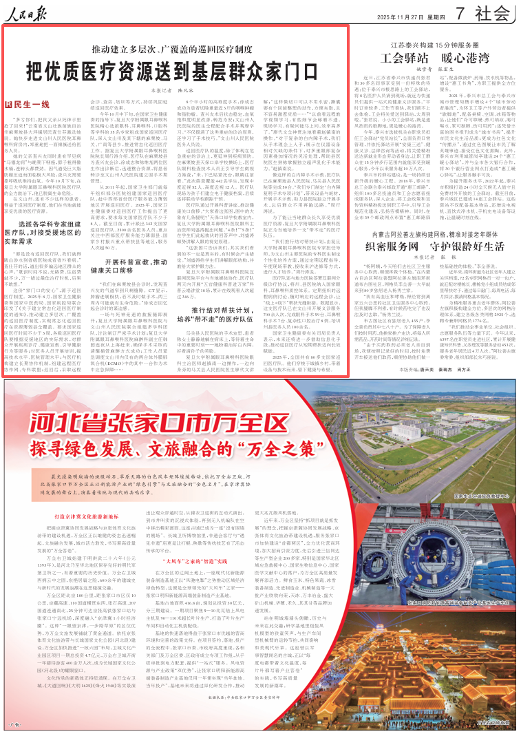 这份“家门口的安心”,源于巡回医疗制度。2025年8月,国家卫生健康委和国家中医药局、国家疾控局联合印发了《关于建立常态化巡回医疗制度的通知》,推动建立多层次、广覆盖的巡回医疗制度,实现常态化巡回医疗在资源薄弱县全覆盖。要求国家巡回医疗时间不少于3周,各级巡回医疗队要根据受援地区的实际需求,对群众开展疾病诊疗、健康宣教、引导健康行为等服务;对医务人员开展培训,提高技术水平、医院管理水平;与医疗机构建立长期协作机制,组建远程医疗协作网、专科联盟;返回后,采取远程会诊、查房、培训等方式,持续巩固延续巡回医疗效果。