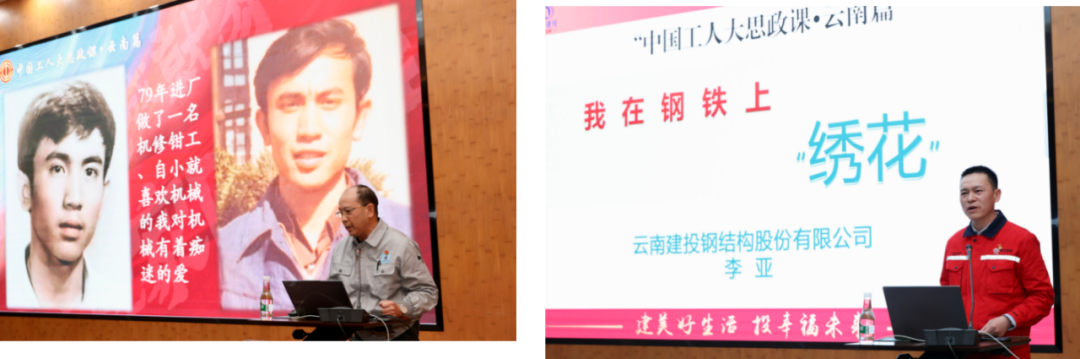 劳模工匠领航。全国劳动模范、2025年度新时代青年先锋奖获得者、云南建投集团钢构公司制造协同中心焊接实验室主管李亚,集团药品事业群“国家级技能大师”、全国技术能手、云南省劳动模范范志伟走上讲台,以亲身经历和体悟诠释“大思政课”之魂。李亚讲述了自己“在钢铁上绣花”的故事,他牢记师傅所说的“一名优秀的焊工,是数以吨计的焊条和钢板堆积而成的”,几十年如一日磨炼技艺,用亲身经历鼓励学员们将工匠精神融入血脉;范志伟以一句“来到这里,和大家分享我的工作与学习感悟,我走了整整45年”开场,分享了自己将个人命运与企业紧密相连的动人故事,并向学员们传授自己的“匠心秘诀”——把工作当成自己的“作品”,而非“任务”。两位劳模的讲述引发全场共鸣,更以“把‘思政课’变成‘人生课’”的寄语,为活动注入情感力量。