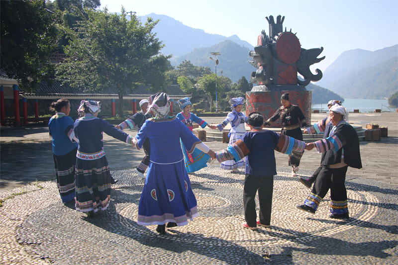 中寨村自然环境优越,村庄被黄泥河环抱,周边峰林苍翠、峡湖清幽,生态景观资源得天独厚,曾经因交通不便、资源闲置陷入发展困境。沪滇协作的东风吹进村寨后,在党委、政府部门精准对接下,确立“民族文化与自然共生”的发展定位,将布依文化底蕴与生态优势深度融合。依托水库风光与村寨格局,完善村内旅游小环线,配套特色滨水步道、半岛榕树景观平台、布依文化特色街等设施,让村庄既留得住乡愁,又能满足游客旅居需求。
