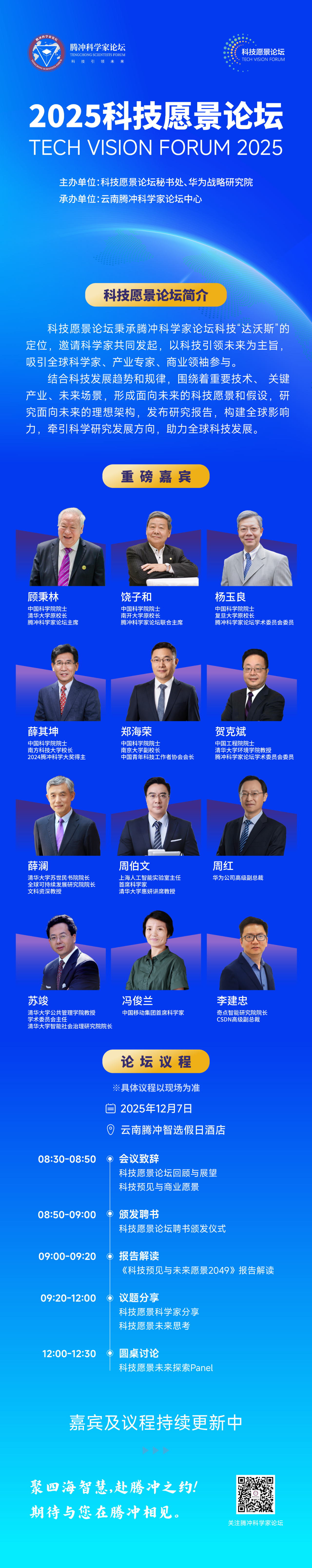 12月6日,2025腾冲科学家论坛开幕式将在云南省腾冲市举行,本届论坛主题为“科学·AI改变世界”。今天,距离论坛开幕式还有5天。