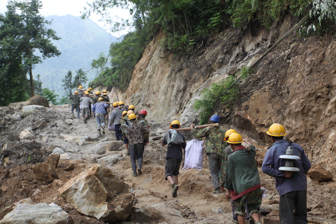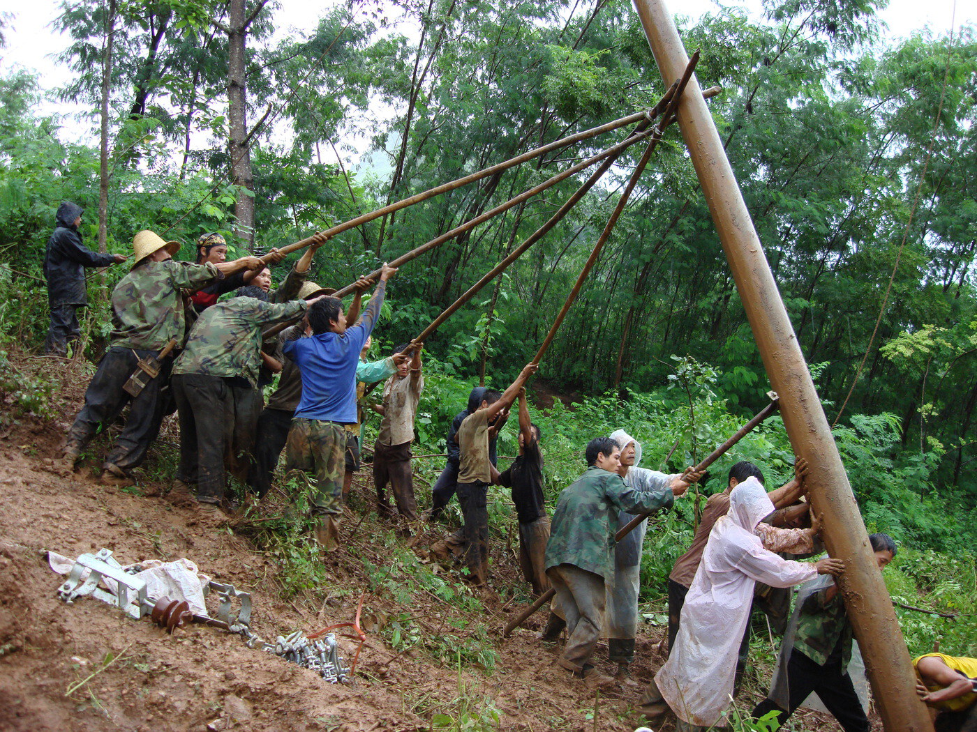 1958年春,6名电网人踏入金沙河畔,用汗水和信念点亮了金平第一盏电灯。这束微光,划破了深山的沉寂,也照见了未来的方向。此后的岁月里,“人抬马驮”成为一代电力建设者的集体记忆——电杆分段捆扎、众人喊着号子攀爬陡坡;马帮驮着瓷瓶导线,在云雾缭绕的羊肠小道上蹒跚前行。