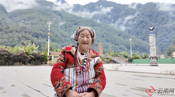 中午时分,独龙江畔卡雀哇广场的石阶被阳光熨暖,71岁的独龙族奶奶肯玉珍和老年协会的伙伴们相聚于此,她身上七彩独龙披肩的纹路在阳光下泛着柔和的光。
