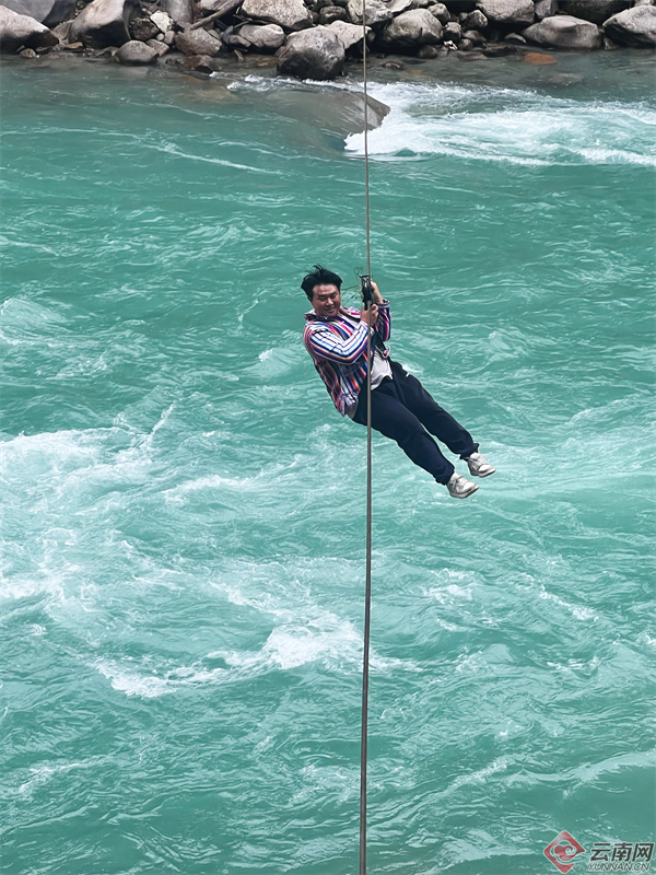 如琴弦颤动惊醒峡谷黎明,孔增华已记不清是第几次从独龙江上空掠过。陪伴他20多年的溜索,见证了每个惊险渡江的往昔,也见证着今日满载而归的喜悦。