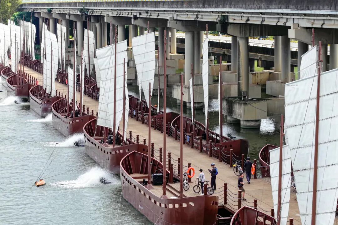 在昆明滇池绿道环草海段钢浮桥骑行。胡妤雅 摄