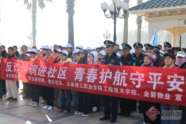 近日,安宁市金方街道恒大社区党委联合安宁市公安局、金方街道办事处、罗白派出所、云南理工职业学院工程技术学院等多家单位,在社区玫瑰广场举办“反诈涂鸦进社区・青春护航守平安”主题活动,近200名工作人员、民警、师生志愿者及居民代表参与,以艺术赋能反诈宣传,构建社校警协同防诈防线。
