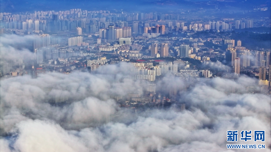 城市笼罩在云雾之中(摄于12月10日)。新华网 赵普凡 摄