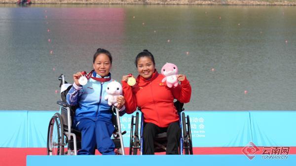 赛程持续3天,在24个竞赛项目中,云南残疾人运动员身穿红色领奖服16次站上领奖台,这抹来自七彩云南的鲜艳红色,代表着云南无数残疾人运动员对命运不屈的“致敬”。云南省残疾人皮划艇运动员普毅、李爱武、线小月、段玉国、管能威、钟永渊、朱建荣、张春红组成的“水上滇军”,每一块奖牌都是他们拼尽全力换来的,每一个获牌者背后都有着了不起的追梦故事。