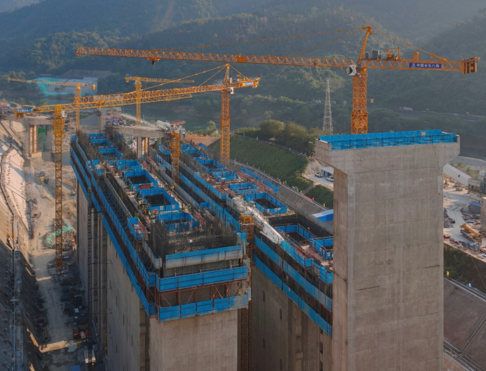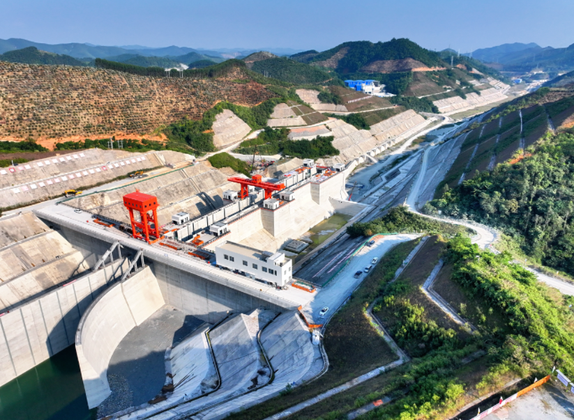 在富宁县剥隘镇,塔吊挥舞长臂,机械轰鸣作响,工人们正为富宁港建设工程争分夺秒。数十公里开外,百色水利枢纽通航设施的省水船闸已巍然矗立,有“水上电梯”之称的升船机建设正酣,这座创下多项国内外纪录的超级工程,正在向明年试通航的目标冲刺。