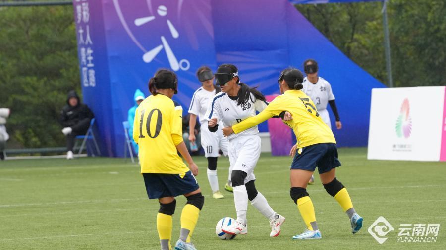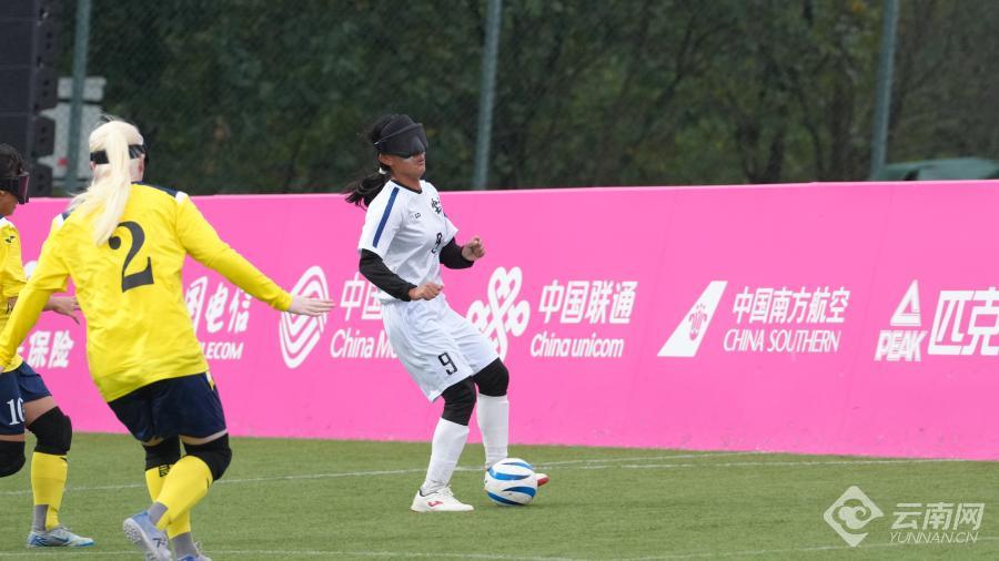 当叮叮作响的足球滚过绿茵赛场,佩戴眼罩的运动员侧耳倾听迅速判断方位,她们在完全的黑暗中奔跑、传球、防守、射门、进球——2:0,云南女子盲人足球队对阵河南盲人女足,一举夺冠。12月14日,云南姑娘们收获了全国残特奥会历史上首个女子盲人足球的冠军荣耀。