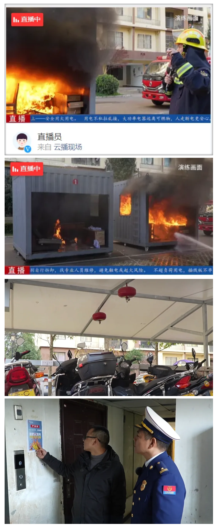 通过简易喷淋灭火对比实验,直观展示安装喷淋系统的重要性。消防人员和街道工作人员带领观众实地探访卯家湾安置区的电动自行车集中停放充电设施与“电梯智能阻止系统”,拆解技防防控要点。