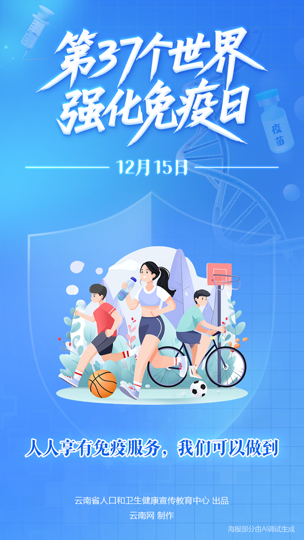 每年的12月15日是世界强化免疫日,这一节日最初是为了消灭脊髓灰质炎(又称小儿麻痹症)而设立的。如今,脊髓灰质炎已经得到了有效控制,世界强化免疫日的含义也变得更加广泛,呼吁公众关注免疫力,重视疾病预防,提升全民健康素养已成为全社会共识。