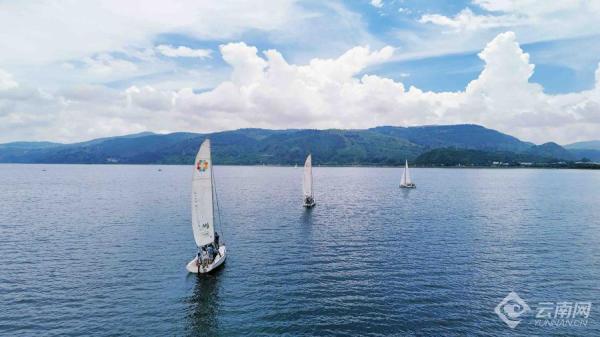 帆船在抚仙湖扬帆起航。高吴双 摄
