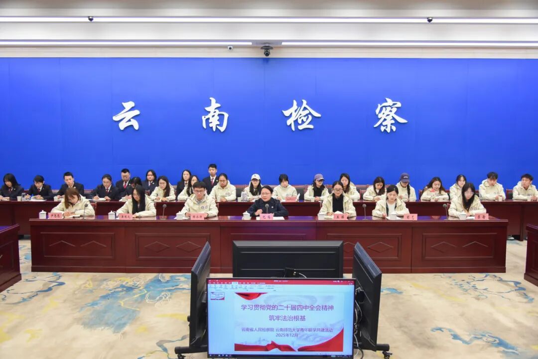 12月19日,云南省检察院举办“学习贯彻党的二十届四中全会精神,筑牢法治根基”检校青年联学共建暨2025年第四季度云检青年论坛活动。省检察院青年检察人员与云南师范大学师生齐聚一堂,以理论宣讲、案例分享、互动交流的形式,共话法治使命,共筑职业理想。省检察院党组成员、副检察长李世清出席活动并讲话。