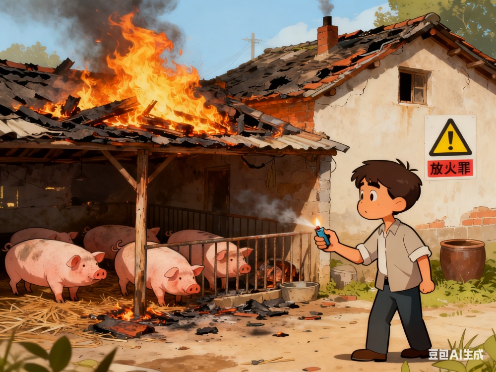 2025年9月某日凌晨,李某因生活不顺,便萌发将自家烧毁自尽的想法,于是将自家猪圈顶棚上的松毛点燃,致使猪圈、厢房部分房屋烧毁,邻居家厨房外墙被熏黑。大火被及时赶来的消防站、派出所人员扑灭。