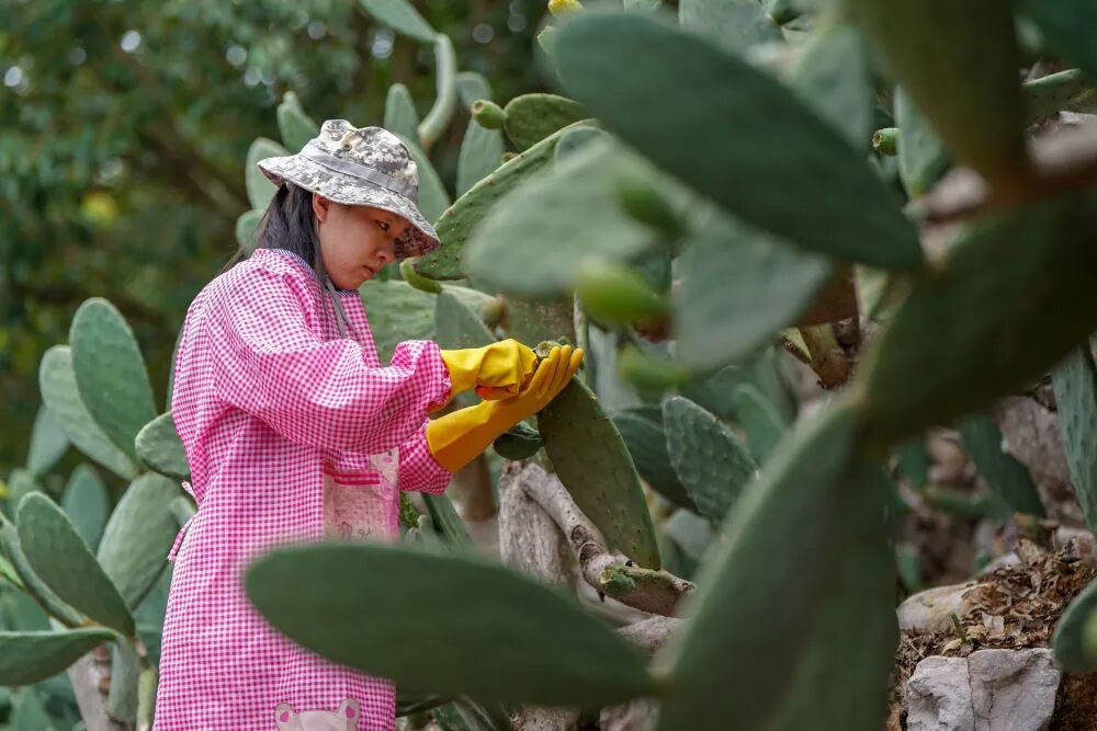 2021年,赶上“归雁行动”,在外经商的鲁春红与11名优秀的返乡青年组建强有力的村小组班子,并立足庄子田200多年的仙人掌种植传统,认准了“用仙人掌治理石漠化”的发展路径。
