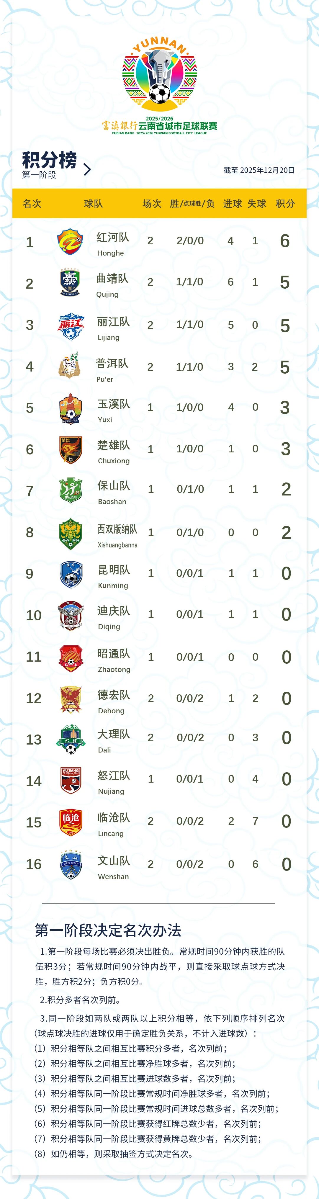 云南网编辑综合整理自云南省城市足球联赛小程序、滇超联赛等