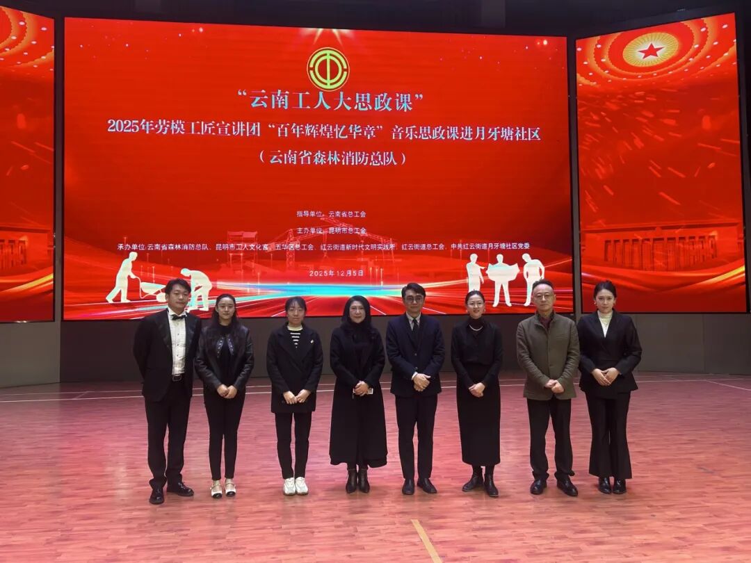 12月5日下午,云南工人大思政课“百年乐章忆辉煌”宣讲活动(云南省消防总队专场)在月牙塘社区举行。本次活动由云南省总工会指导,昆明市总工会主办,云南省森林消防总队、昆明市工人文化宫、五华区总工会、红云街道新时代文明实践所、红云街道总工会及中共红云街道月牙塘社区党委联合承办,以创新形式为职工党员呈现了一场兼具思想深度与艺术感染力的视听盛宴。