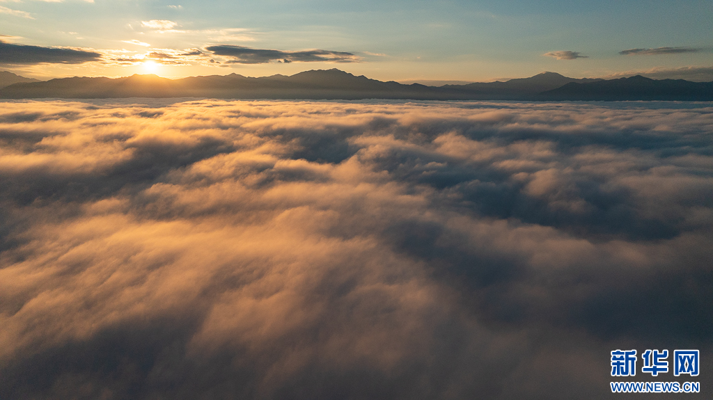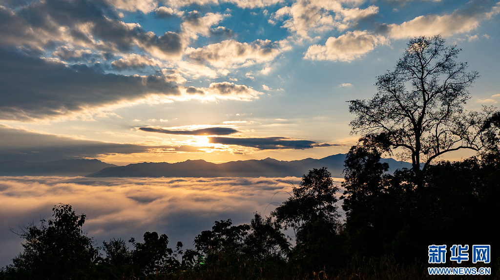 在云南省普洱市景谷傣族彝族自治县的群山之巅,冬日云海如潮涌。当晨光初露时,云浪与峰峦尽染霞光,勾勒出一幅恢弘的天地画卷。