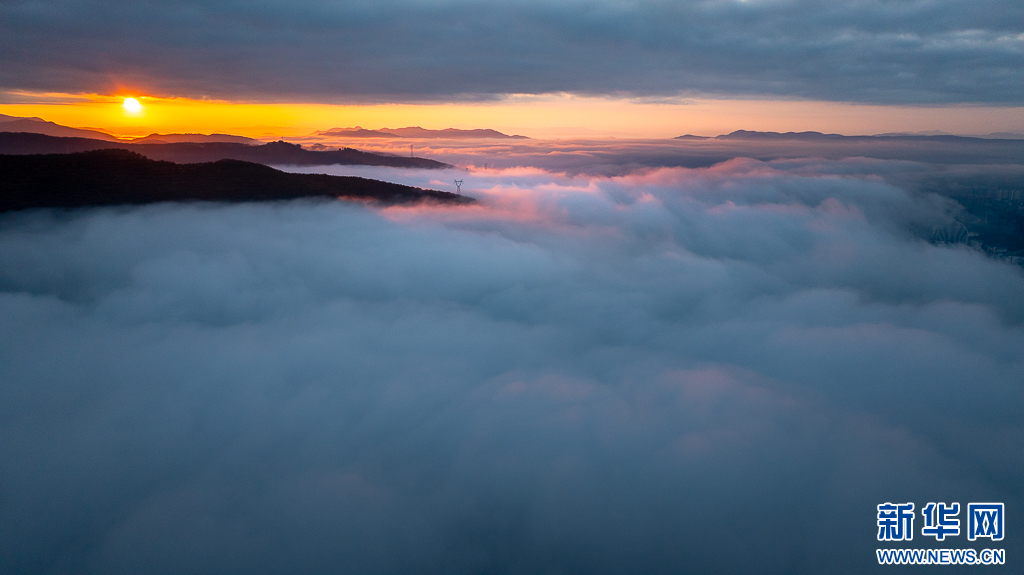 日出时分,阳光照耀云海(1月2日摄)。新华网发(刘东 摄)