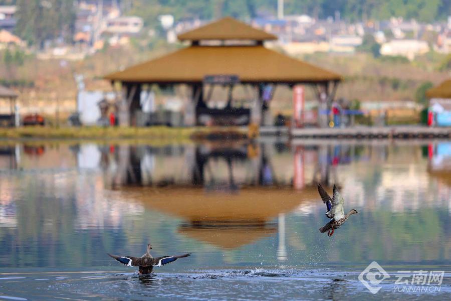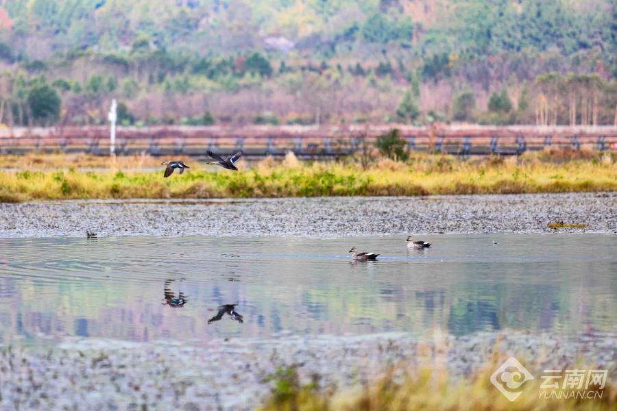 腾冲北海湿地公园冬日鸟纷飞。