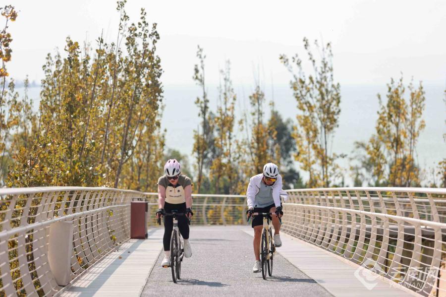 冬日暖阳洒落,滇池水面波光潋滟,远山与湖面在视线尽头交汇成一幅开阔画卷。沿着滇池绿道缓缓前行,游客或慢跑、或骑行、或驻足拍照,“人在景中走,如在画中游”的惬意场景随处可见,也让“有一种叫云南的生活”变得可感可触。