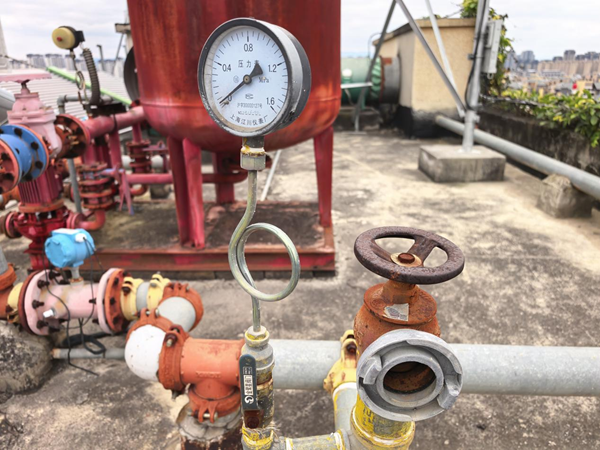 隐患问题:消防水池进水管被切断,消防水池无水,高位消防水箱无水;稳压泵损坏不能正常使用,气压罐、电节点压力表锈蚀严重;屋顶试验消火栓无水,栓口锈蚀。