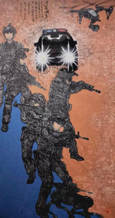 中国画《云岭铁军守护安宁》,岳维传创作