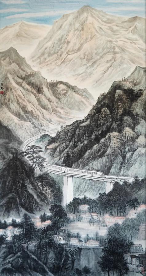 中国画《山河通途·警守万家》,周烈彪创作