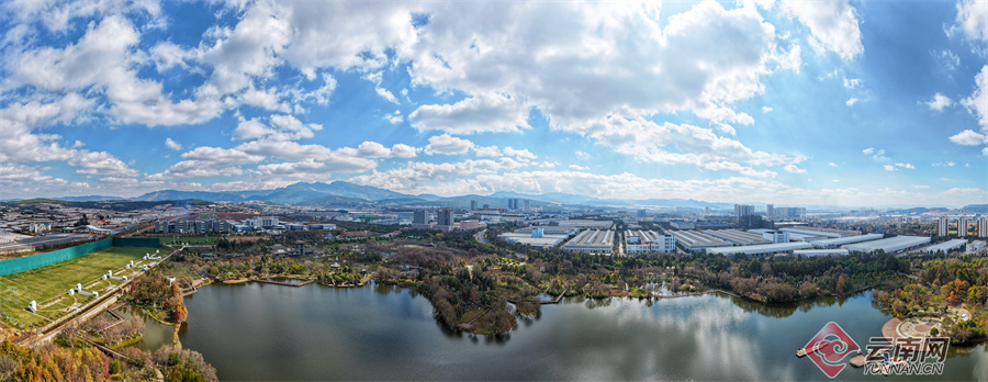 从渔浦寒泉生态湿地公园远眺整个昆明高新区东区。