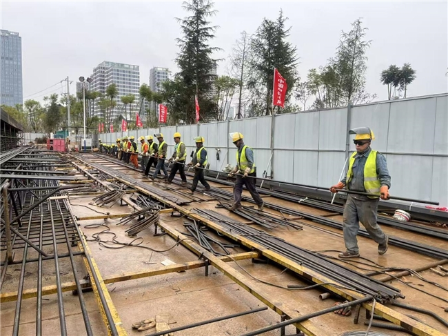 本泵站为瀑布公园补水分干线关键节点工程,其地下连续墙施工顺利完成,为后续主体结构施工奠定坚实基础。施工阶段,项目团队直面三大核心难题:一是场地狭小,58米长钢筋笼整体吊装难度大;二是水文地质条件复杂,作业区距盘龙江仅0.8米,成槽施工质量管控标准严苛;三是进场道路协调难度高,需全天候外运渣土,且毗邻河道的施工场景对环保要求严格。针对上述难题,项目团队靶向施策,落实三项应对措施:一是优化场地布局,定制专项吊装方案,采用“双机抬吊+空中翻转”工艺,严控起吊速度与角度,保障钢筋笼吊装安全高效;二是对临江侧地连墙采用新制浆液,结合成槽至江底高程回灌混凝土工艺构筑止水帷幕,切断水力联系,成槽过程中实时调整泥浆比重,确保槽壁稳定;三是超前对接相关部门,协调解决道路通行与渣土外运事宜,同步配置水质、环境监测设备,严守环保施工底线。