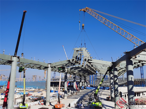 “元旦以来,项目上每天约有170人参与施工,大家干劲十足,抢抓施工黄金期,加快推进T2航站楼南段D指廊主体结构施工和钢结构吊装,计划今年8月底完成钢结构施工。”中铁北京工程局昆明长水国际机场改扩建工程T2航站楼工程(南段)项目部生产副经理任增燃告诉记者,“与此同时,该项目穿插工序转换和二次结构的施工也已经开始启动。”
