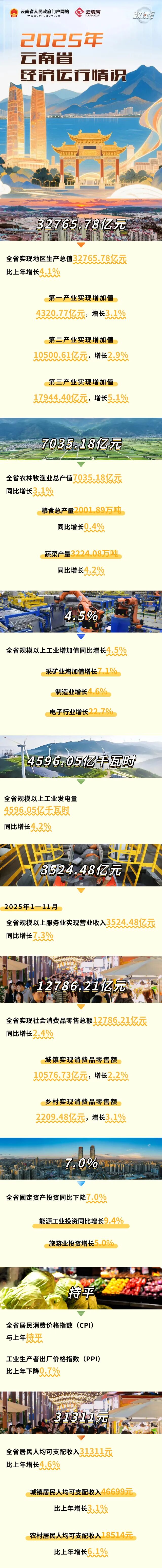 数读云南丨2025年全省实现地区生产总值32765.78亿元