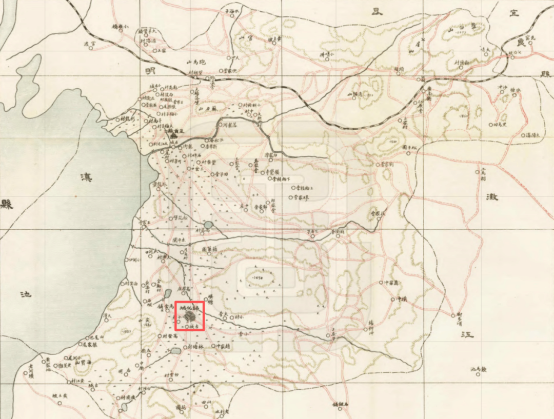 国立中山大学在呈贡县归化城办学位置(《新纂云南通志现行设治区域图》1949年)