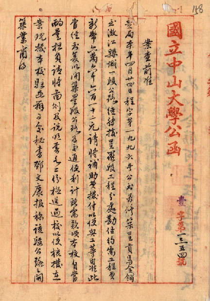 国立中山大学推动修通昆澄公路呈澄段的部分往来函件(云南省档案馆)