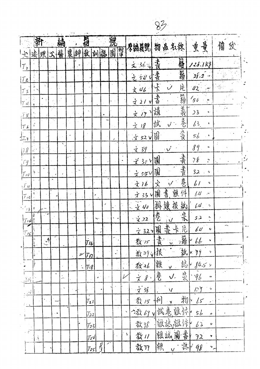 《国立中山大学存滇公物箱号表》部分(中山大学档案馆藏)