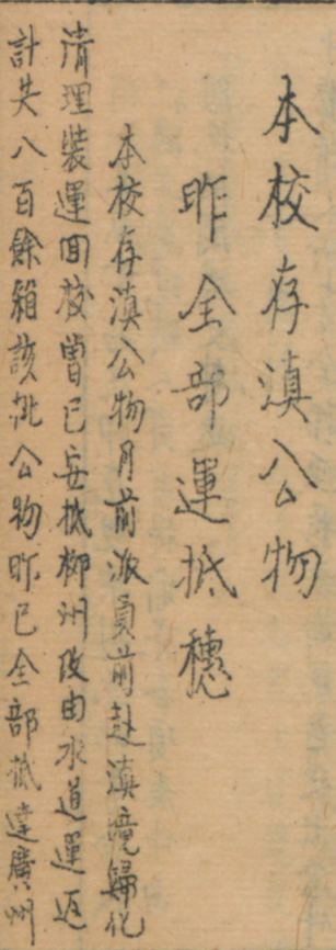 1940年中大离开云南返回广东,大量物资存留在归化。先由中大留澄办事处主任、总务处长柳金田教授负责保管,后因柳教授去世,中大报请云南省政府主席龙云和呈贡县政府协同加以保管。至1943年4月陆续运回17批共计948箱至粤北,后因经费问题停运,抗战胜利后才将八百余箱陆续运回广州。