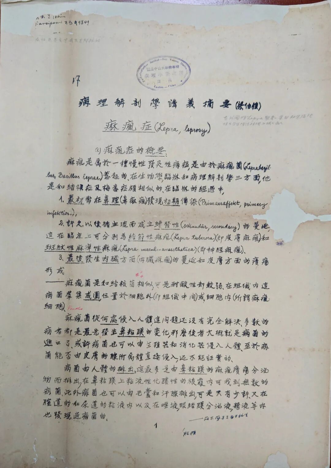 在呈贡发现的梁伯强《病理解剖学讲义摘要》部分(宋辞捐赠)