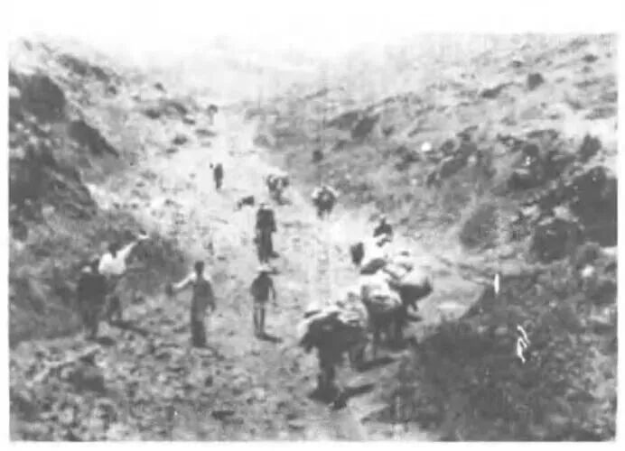 考察队根据老照片对比现场环境,考证其拍摄大体地点应是位于姑娘桥左侧牛屎坡上