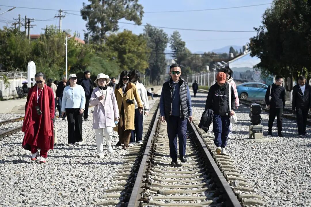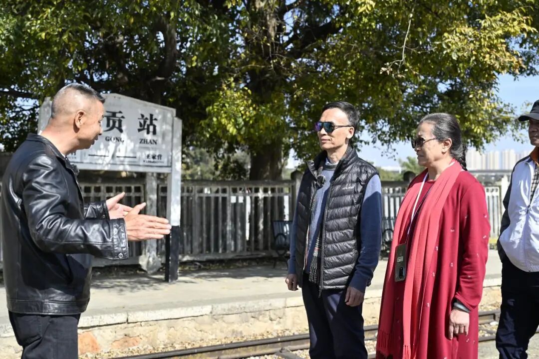 12月1日下午,考察队来到呈贡火车站。呈贡站位于呈贡区洛羊街道,是滇越铁路滇段最初三十四个车站之一。自1910年随全线通车启用,至今已有百余年历史。车站由法国人主导设计建设,带有明显的法式建筑风格,是清末民初云南交通近代化的重要见证。全面抗战时期,滇越铁路一度成为中国获取国际援助的交通要道,呈贡站承担了大量物资转运与人员疏散任务,为后方稳定与前线补给发挥了重要作用。
