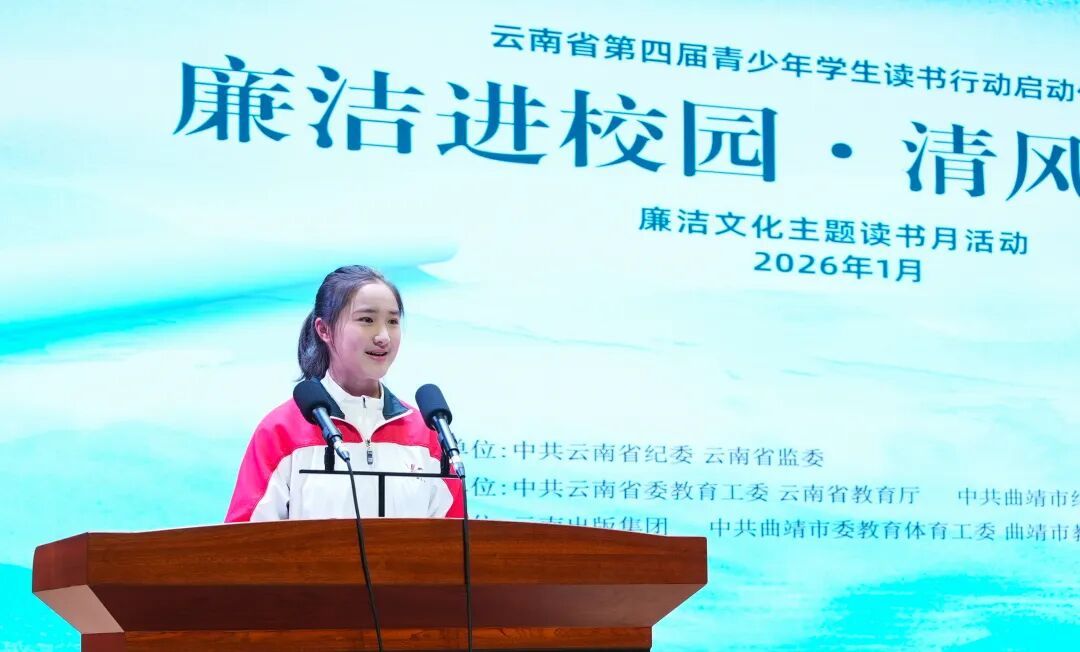 1月22日,由省纪委监委指导,省委教育工委、省教育厅和曲靖市纪委监委联合主办的全省第四届青少年学生读书行动启动仪式暨“廉洁进校园·清风润心田”廉洁文化主题读书月活动在曲靖市第一中学举行,来自全省各州(市)教体系统代表、全省15所《新时代学校廉洁教育读本》学用工作试点学校负责人与曲靖市第一中学师生代表齐聚一堂,点亮阅读书灯,宣读廉洁誓言,开启书香之旅。