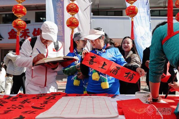 墨香传情添年味,活动现场设置书法送福专区,多位书法家挥毫泼墨,在大红宣纸上书写寓意吉祥的马年春联与“福”字,承载着满满新春祝福,赠送给现场球迷与游客,引得大家争相领取,欢声笑语不断。迎财神巡游队伍身着喜庆服饰,手持福字、春联穿梭于活动现场,让现场年味愈发醇厚。
