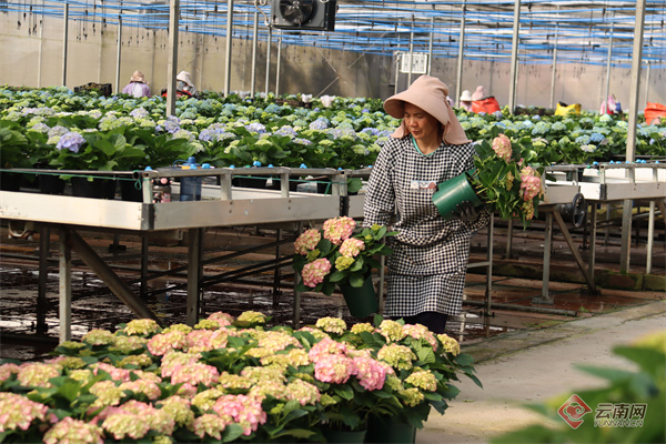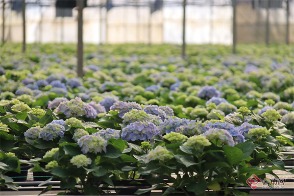 近年来,嵩明县以缤纷园艺为代表的一批龙头花卉企业以市场为导向,积极转变发展思路,以科技助力发展新品种花卉,反季绣球成为一大亮点。