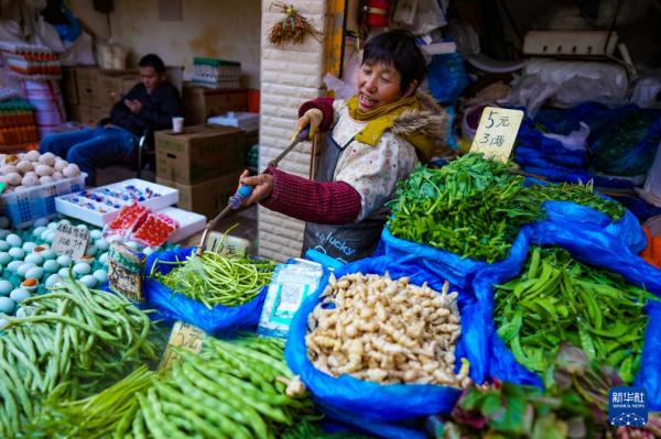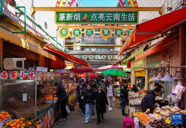 1月27日,人们在昆明大观篆新农贸市场内游览、购物。新华社记者 陈欣波 摄