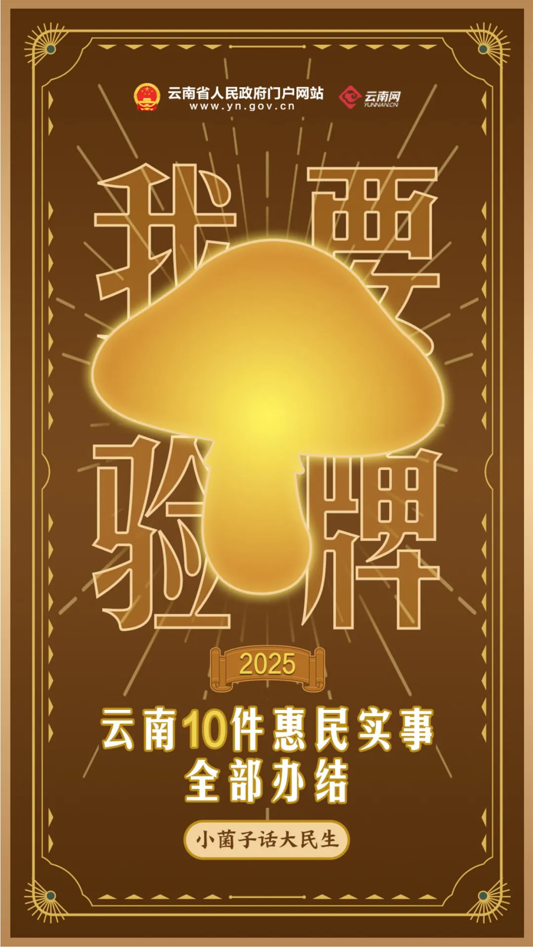 云南专属菌子“天团”上线!带着泥土芬芳,满载民生温暖,为您细说云南2025年惠民实事的完成情况。