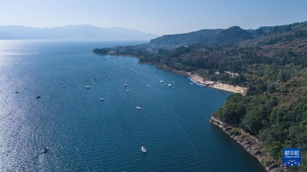 冬日抚仙湖碧波荡漾,风光宜人,吸引不少游客前来游览。