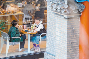 游客在位于翠湖周边的翠湖咖啡文化中心休闲。